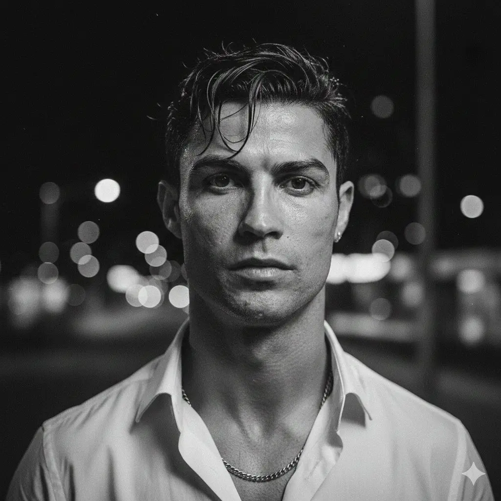 "body_markings": "Black ink portrait tattoo visible on the left forearm"